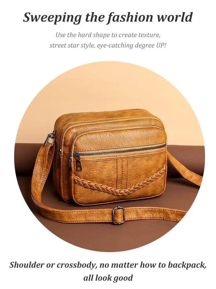 Malá štvorcová taška z mäkkej hovädzej kože s tkaným vzorom